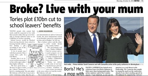 In breve l’articolo parla della possibilità che i tagli effettuati dal governo conservatore vadano a toccare anche i sussidi che vengono dedicati ai giovani che terminano gli studi. Sussidi che fino ad oggi hanno permesso a molti ragazzi di lasciare la casa di famiglia appena finita la scuola e l’università.